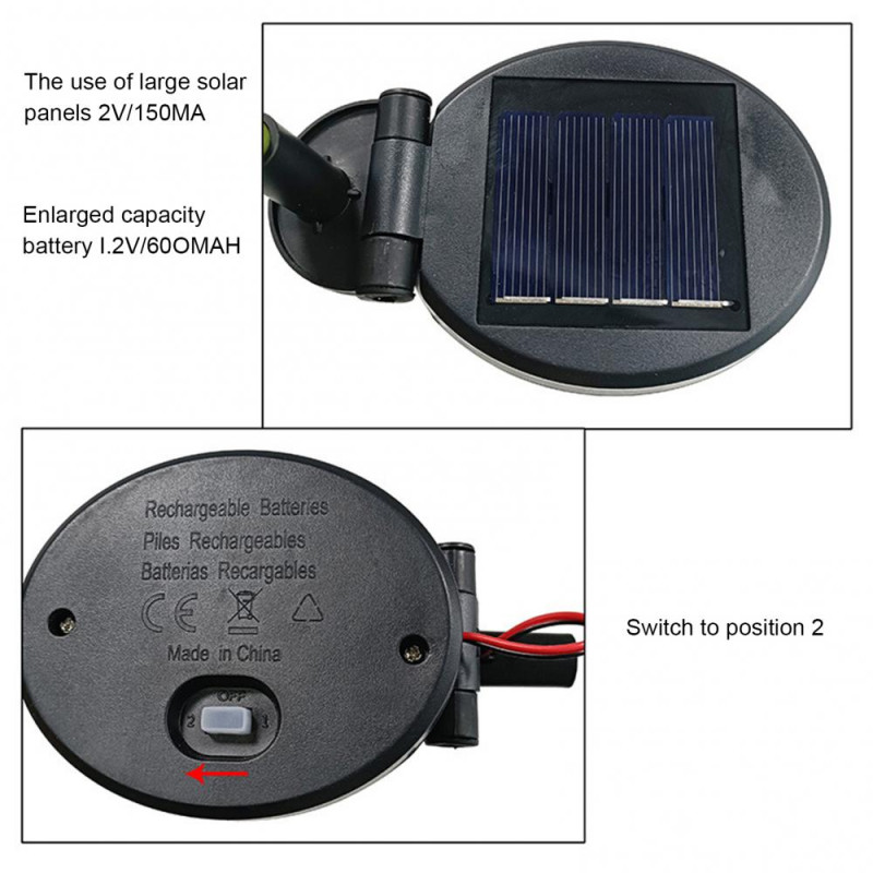 Item Name: Christmas Lights Material: Plastic Protection Level: IP65 Solar Panels: 2V/150MA Battery: 1.2V/600mAh (NiMH) LED Number: 12 Charging Time: 6 Hours (Exposure Sunlight) Working Hours: More Than 10 Hours Features: Eco-Friendly, Durable, Colorful Size Details: 78cm/30.71" (Approx.)