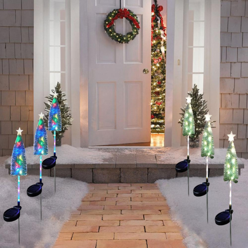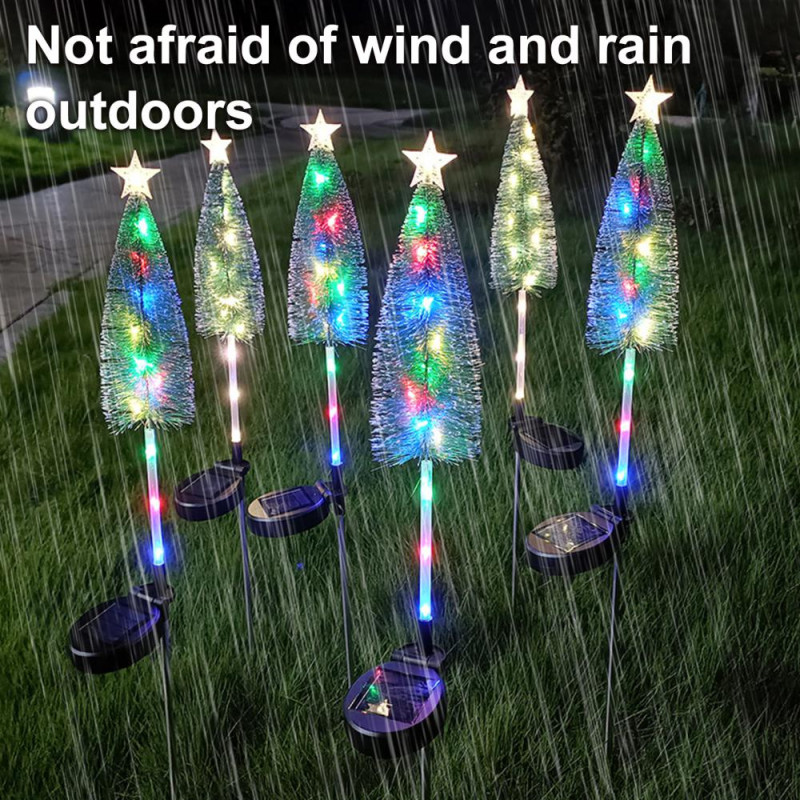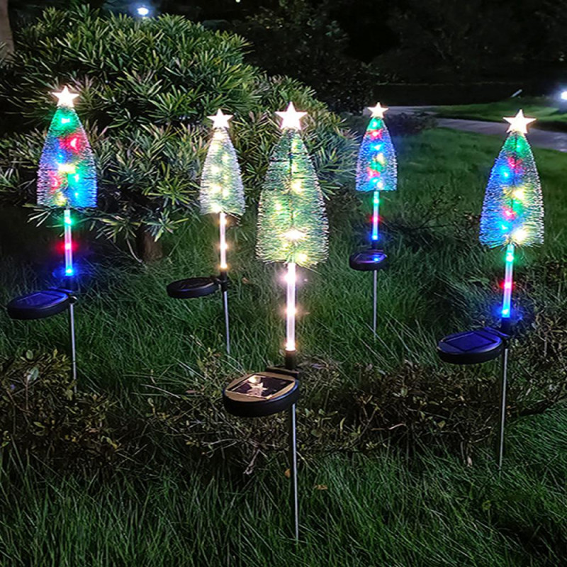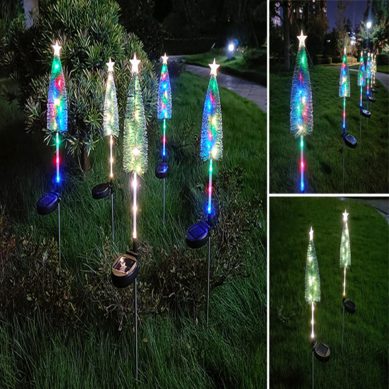 Solar Powered Christmas Tree Lights Outdoor Waterproof LED Lawn Lights with Star Topper Colorful Holiday Garden Decoration for Yard Patio