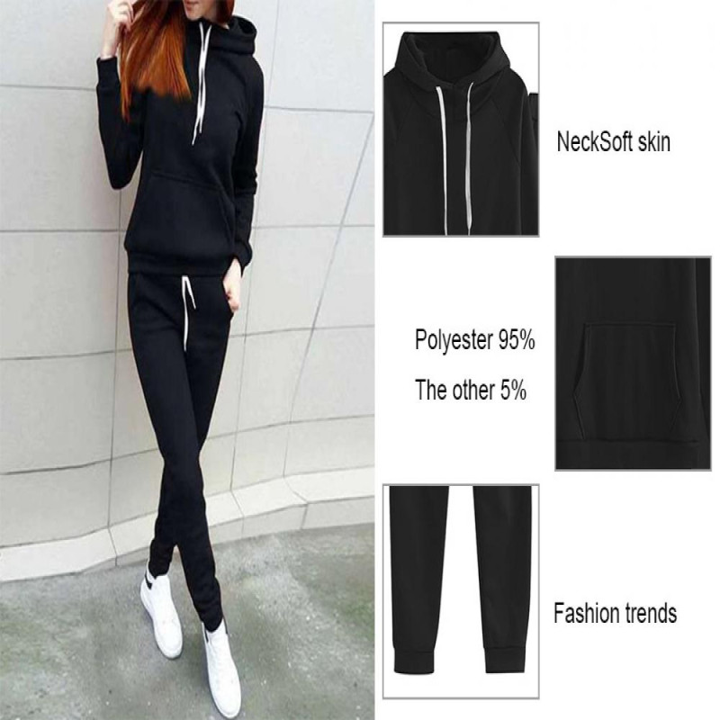 Item Name: Top Pants Suit Material: Polyester Fiber Style: Sport Top Length: Regular Pants Length: Ankle Length Size Type: Regular Season: Fall, Spring, Winter Collar: Hooded Sleeve: Long Sleeves Features: Plush Lined, Elastic Waist, Ankle-banded Size Details: Size: M, Bust: 98cm/38.58", Clothes Length: 63cm/24.8", Waist: 96cm/37.8", Hip: 100cm/39.37", Pants Length: 108cm/42.52" (Approx.) Size: L, Bust: 102cm/40.16", Clothes Length: 64cm/25.2", Waist: 100cm/39.37", Hip: 104cm/40.94", Pants Length: 110cm/43.31" (Approx.) Size: XL, Bust: 106cm/41.73", Clothes Length: 65cm/25.59", Waist: 104cm/40.94", Hip: 108cm/42.52", Pants Length: 112cm/44.09" (Approx.) Size: XXL, Bust: 110cm/43.31", Clothes Length: 66cm/25.98", Waist: 108cm/42.52", Hip: 112cm/44.09", Pants Length: 114cm/44.88" (Approx.) Size: XXXL, Bust: 114cm/44.88", Clothes Length: 67cm/26.38", Waist: 112cm/44.09", Hip: 116cm/45.67", Pants Length: 116cm/45.67" (Approx.)