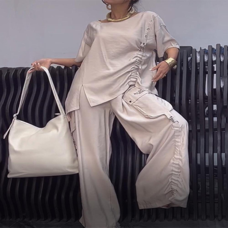 Stylish Design: This women's casual two-piece set features a shirring design on the short-sleeved solid color T-shirt and wide-leg trousers, offering a stylish and personalized look that is perfect for various occasions.