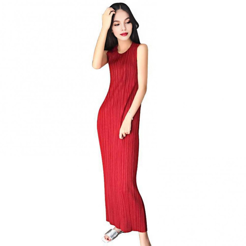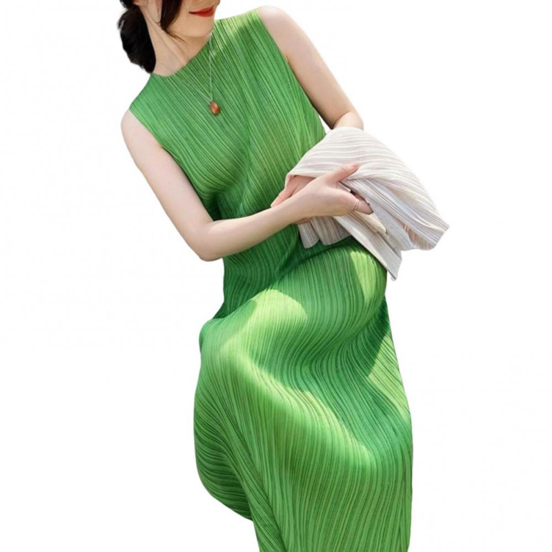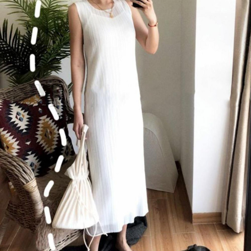 Item Name: Women Dress Material: Polyester, Spandex Neck: Round Neck Sleeve: Sleeveless Gender: Women Style: Casual Size Type: Regular Season: Summer Features: Pleated, Loose, Solid Color Size Details: Size: S, Bust: 70cm-150cm/27.6"-59.1", Dress Length: 113cm/44.49" (Approx.) Size: M, Bust: 70cm-150cm/27.6"-59.1", Dress Length: 114cm/44.88" (Approx.) Size: L, Bust: 70cm-150cm/27.6"-59.1", Dress Length: 115cm/45.28" (Approx.) Size: XL, Bust: 70cm-150cm/27.6"-59.1", Dress Length: 116cm/45.67" (Approx.) Size: XXL, Bust: 70cm-150cm/27.6"-59.1", Dress Length: 117cm/46.06" (Approx.) Size: XXXL, Bust: 70cm-150cm/27.6"-59.1", Dress Length: 118cm/46.46" (Approx.)