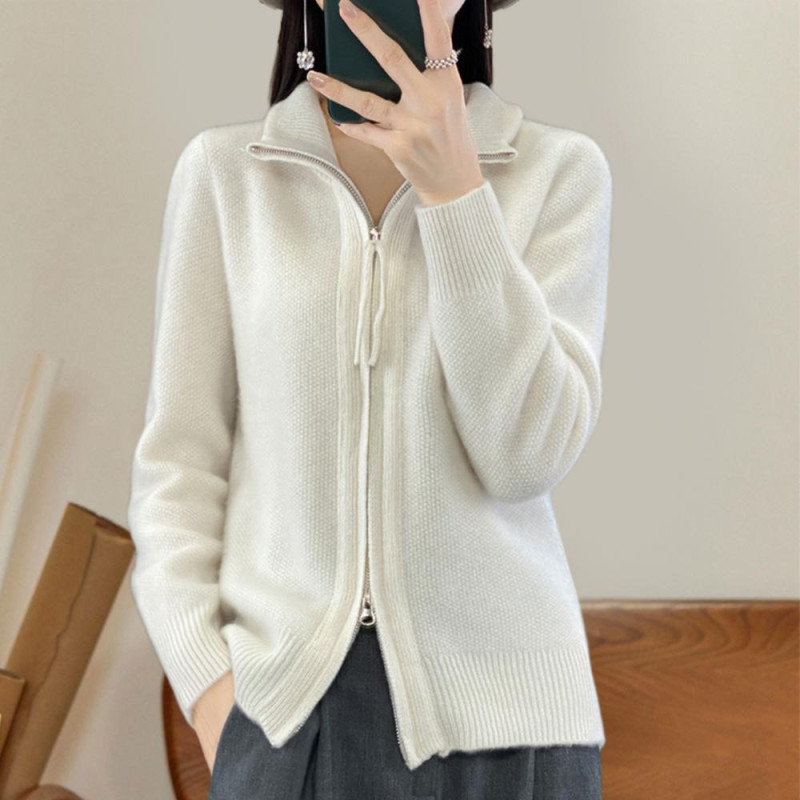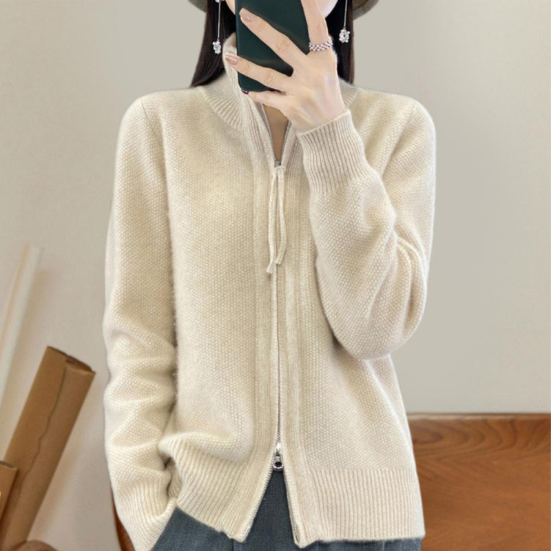 Dual-Zipper Design: Featuring an innovative upper and lower double zipper design, this women's cardigan jacket allows for versatile styling options. Effortlessly transition between casual and chic looks with this fashionable yet practical piece.