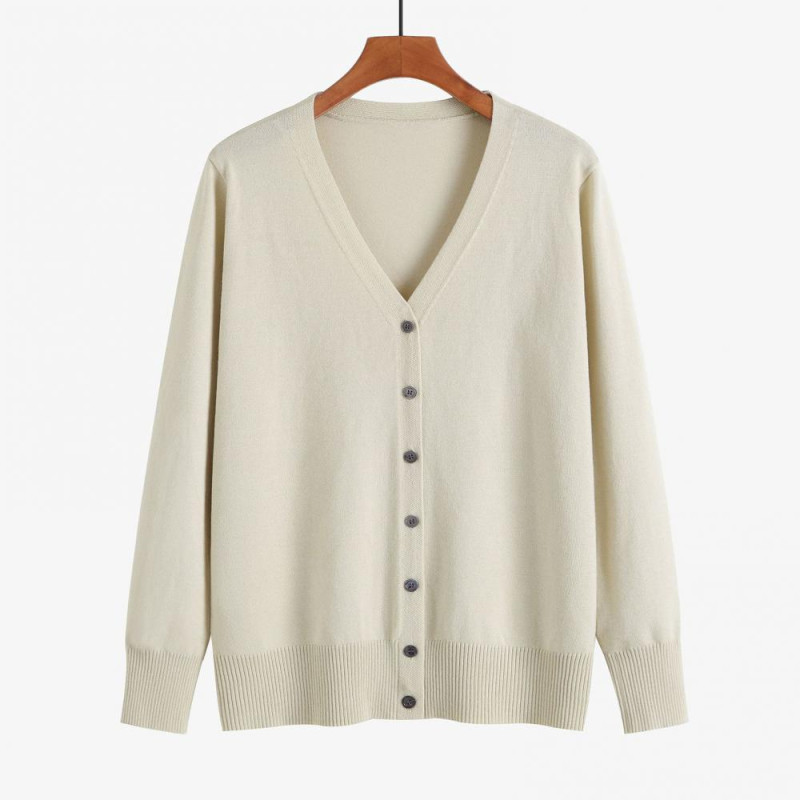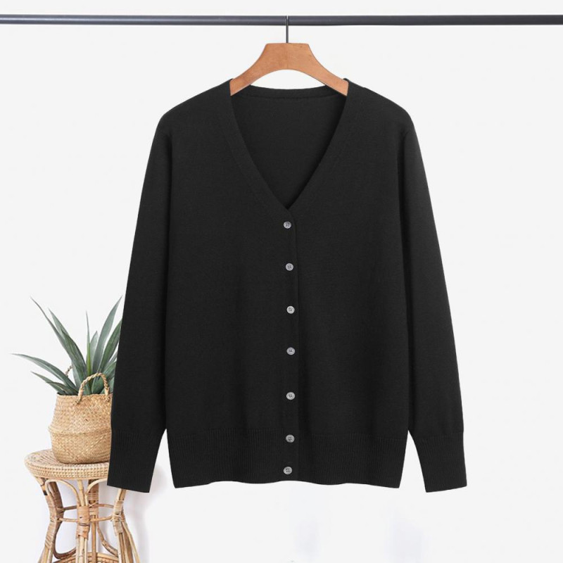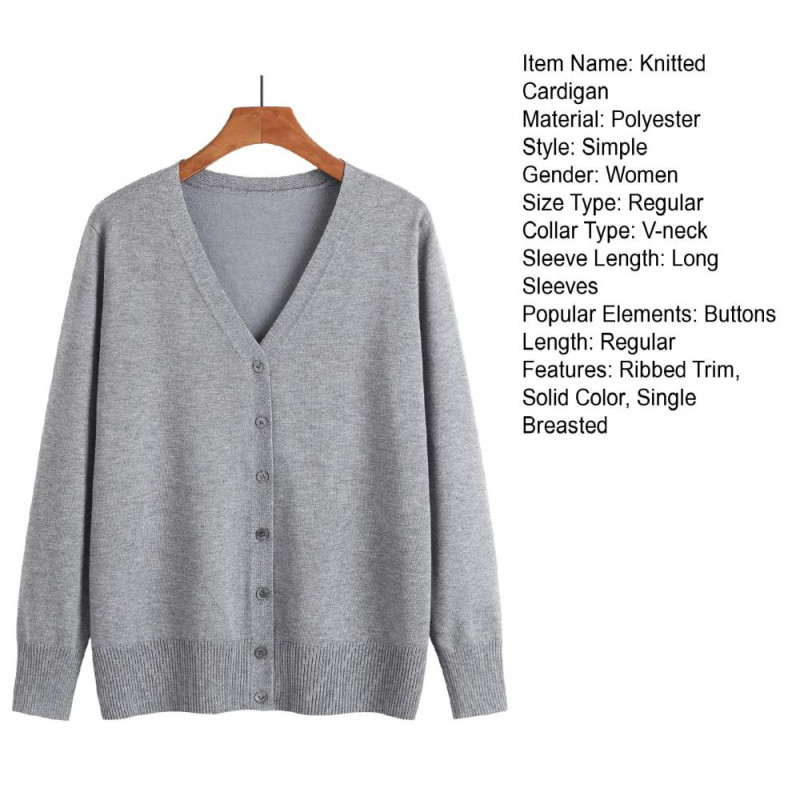 Item Name: Knitted Cardigan Material: Polyester Style: Simple Gender: Women Size Type: Regular Collar Type: V-neck Sleeve Length: Long Sleeves Popular Elements: Buttons Length: Regular Features: Ribbed Trim, Solid Color, Single Breasted Size Details: Size: M, Bust: 90cm/35.43", Clothes Length: 58cm/22.83", Sleeve: 57cm/22.44" (Approx.) Size: L, Bust: 96cm/37.8", Clothes Length: 59cm/23.23", Sleeve: 57cm/22.44" (Approx.) Size: XL, Bust: 102cm/40.16", Clothes Length: 60cm/23.62", Sleeve: 58cm/22.83" (Approx.) Size: XXL, Bust: 110cm/43.31", Clothes Length: 61cm/24.02", Sleeve: 58cm/22.83" (Approx.) Size: XXXL, Bust: 120cm/47.24", Clothes Length: 62cm/24.41", Sleeve: 59cm/23.23" (Approx.)