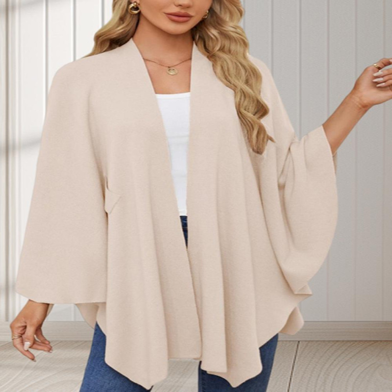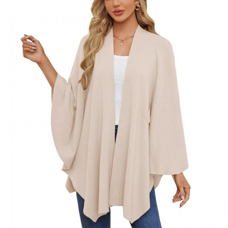 Cloak Tops Women Solid Color Batwing Sleeve Style Shawl Coat Mid-Length Cross Design Cloak Style Blouse