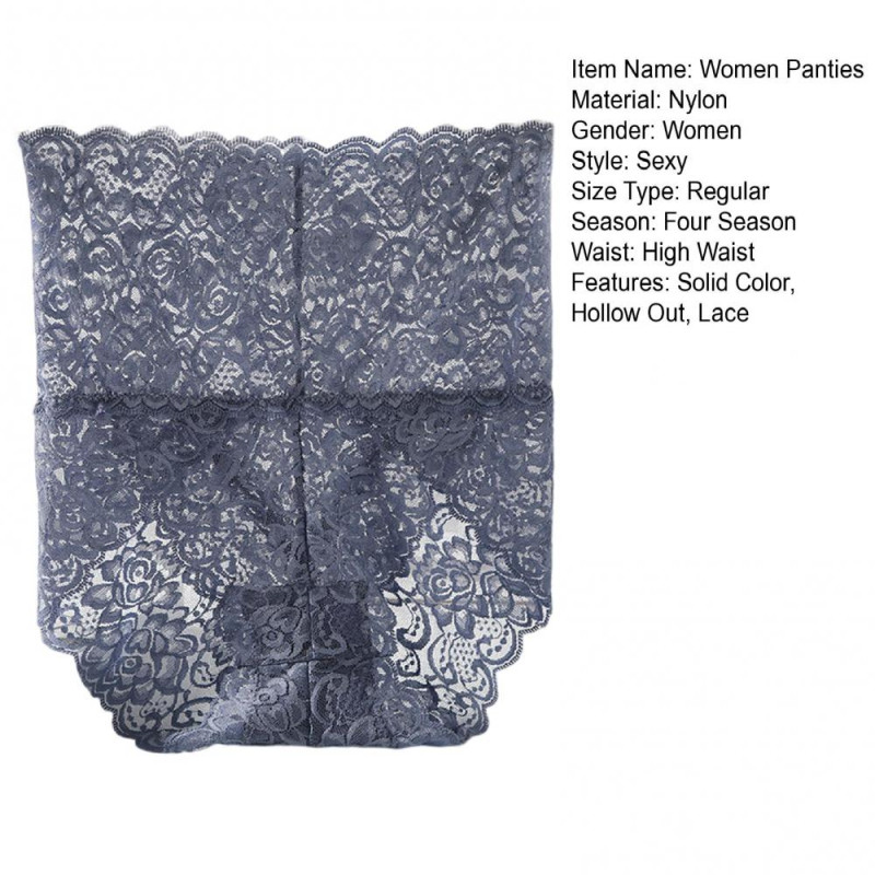 Item Name: Women Panties Material: Nylon Gender: Women Style: Sexy Size Type: Regular Season: Four Season Waist: High Waist Features: Solid Color, Hollow Out, Lace Size Details: Size: M, Waist: 64cm-84cm/25.2"-33.1", Hip: 92cm/36.22" (Approx.) Size: L, Waist: 68cm-86cm/26.8"-33.9", Hip: 96cm/37.8" (Approx.) Size: XL, Waist: 72cm-88cm/28.3"-34.6", Hip: 100cm/39.37" (Approx.) Size: XXL, Waist: 76cm-90cm/29.9"-35.4", Hip: 104cm/40.94" (Approx.) Size: XXXL, Waist: 80cm-92cm/31.5"-36.2", Hip: 108cm/42.52" (Approx.)
