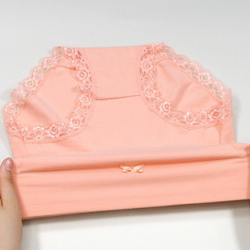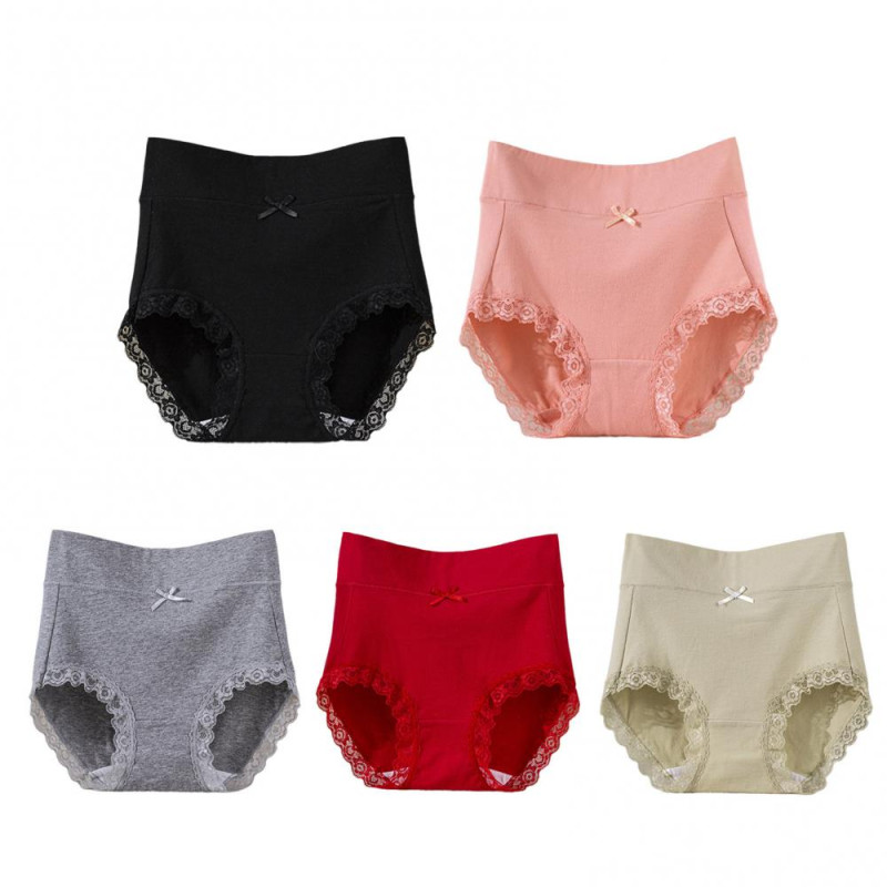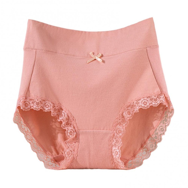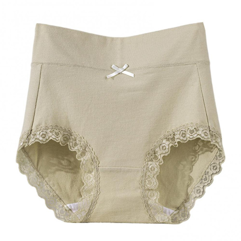 Lady Underpants High Waist Plus Slze Lace Trim Butt-covered Tummy Control Solid Color Elastic Cotton Panties Seamless Comfort Daily Sport Briefs