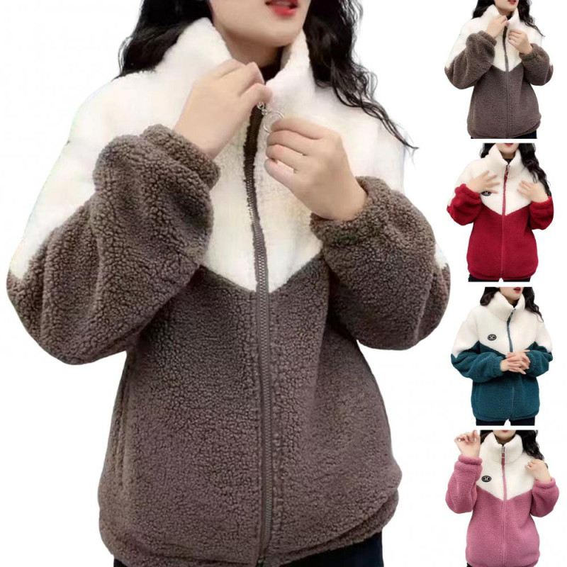 Description: Stay warm and stylish in this women's coat made of soft and comfortable polyester, ideal for autumn and winter. The solid color fleece sweatshirt jacket features added velvet for extra warmth and windproof protection. Its color-blocked design exudes elegance and fashion, making it a versatile piece for daily wear, home, parties, commuting, or office. Pair this long-sleeved jacket effortlessly with various tops and pants to create a chic and casual look that accentuates your feminine charm.