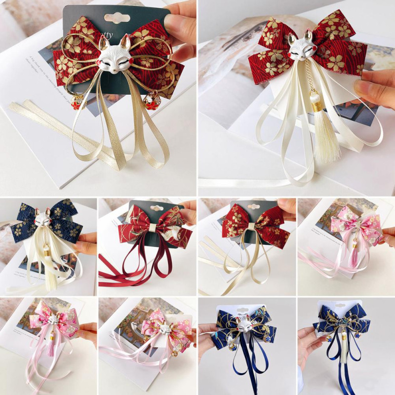 Item Name: Hairpin Material: Cloth Style: Cartoon Features: Red Bow Decor, Fox Figure, Long Ribbon Size Details: Length: 13cm/5.12" (Approx.)