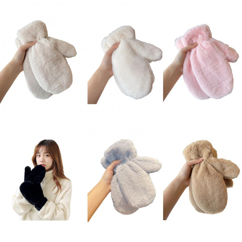 1 Pair Ladies Winter Mittens Thickened Soft Plush Solid Color Cozy Anti-slip Elastic Windproof Heat Retention Warm Lady Outdoor Gloves