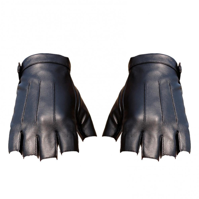 1 Pair Faux Leather Gloves Half Fingers Smooth Waterproof Adjustable Wrist Solid Color Unisex Driving Outdoor Sports Halloween Gloves Cosplay Costume