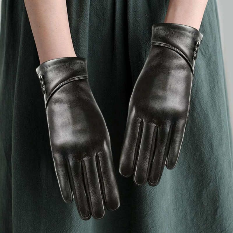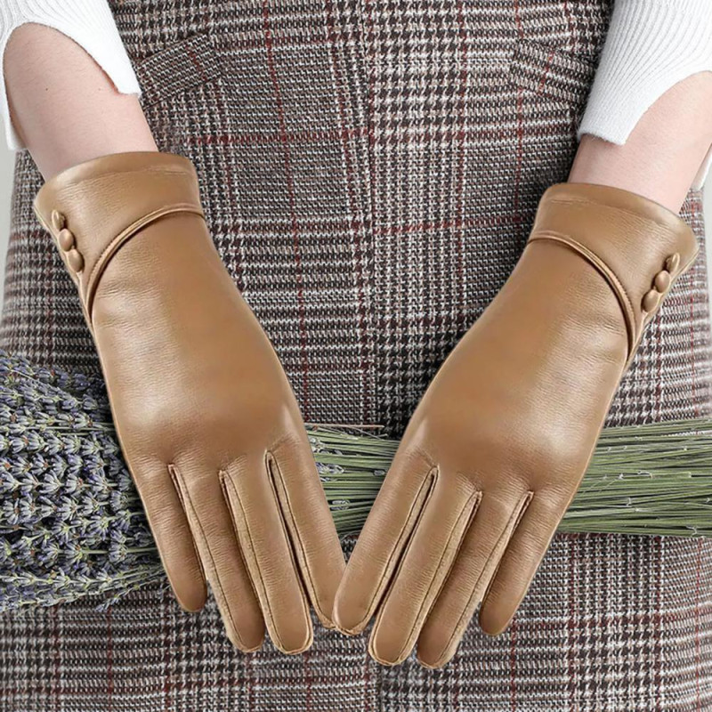 Description: Stay warm and stylish with these exquisite gloves featuring 3D three-dimensional tailoring for a perfect fit. The faux leather outer layer and flannel lining provide a delicate and soft feel, ideal for extreme cold weather. Designed with capacitive touch screen technology on the thumb and index finger, these gloves allow easy control of electronic devices like smartphones. The elastic material ensures a comfortable fit for most women. Adorned with three buttons, these gloves are perfect for outdoor activities such as mountaineering, skiing, cycling, and running. Elevate your winter wardrobe with these elegant and functional gloves.