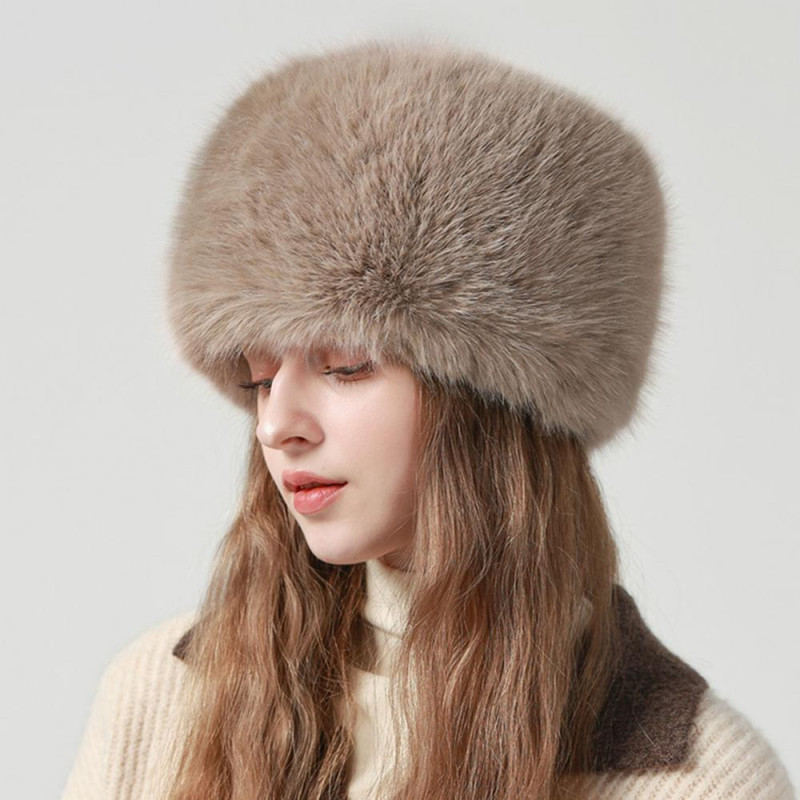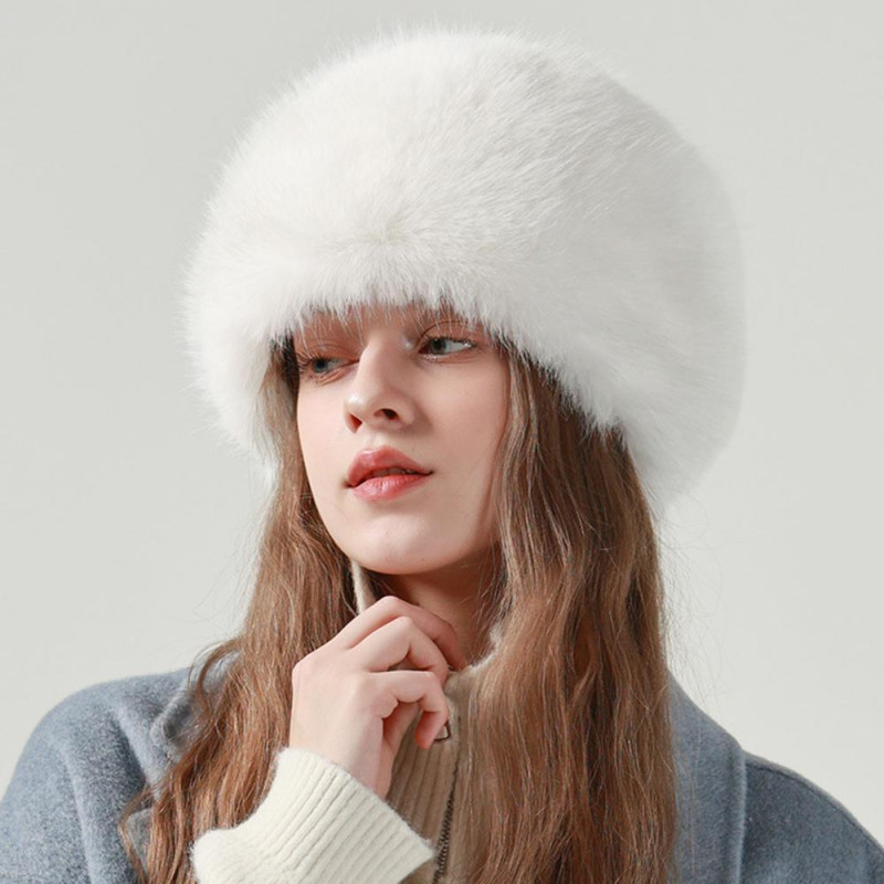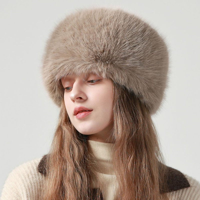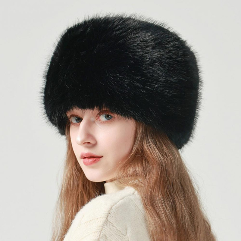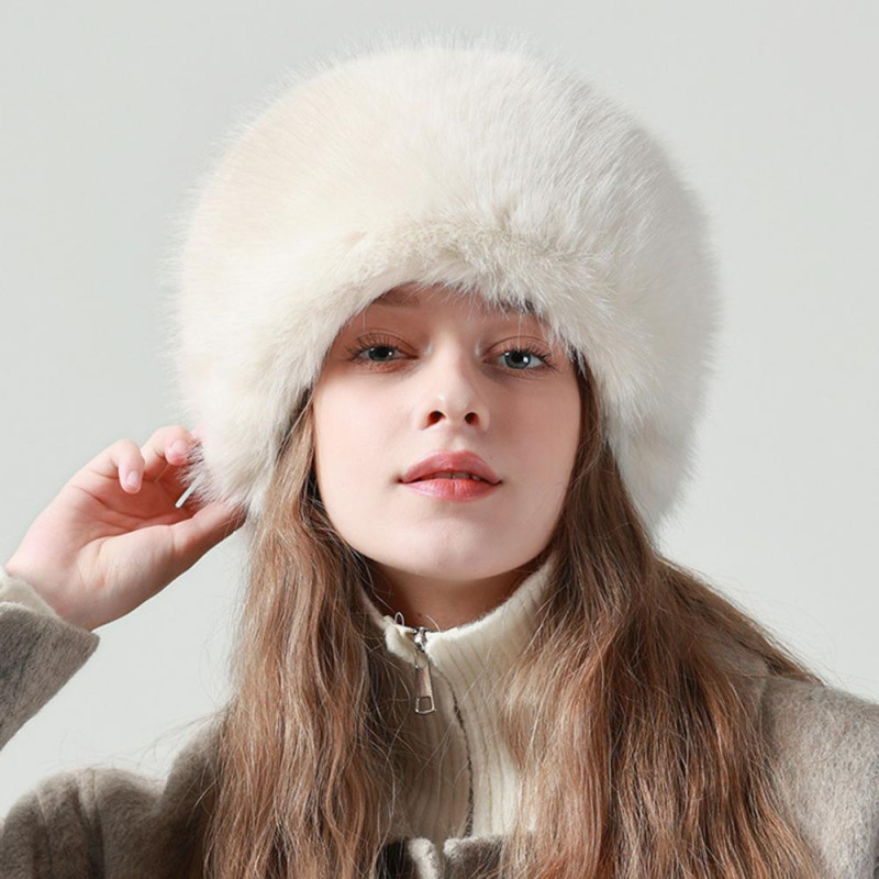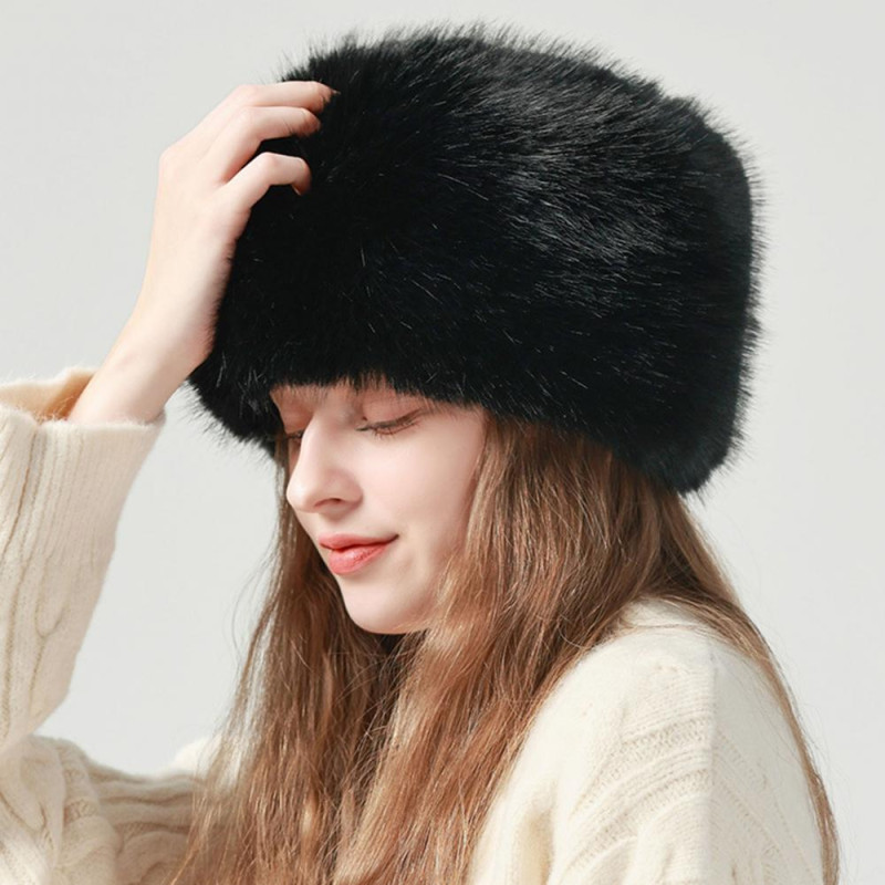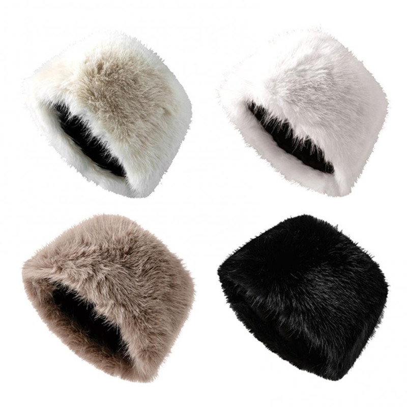 Women Winter Hat Faux Fur Soft Thick Elastic Anti-slip Warm Windproof No Brim Solid Color Ear Protection Basin Hat Outdoor Hunting Cap