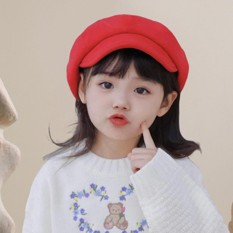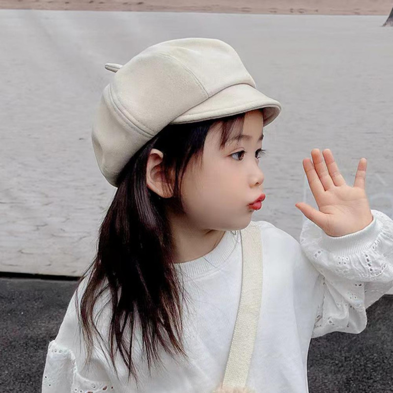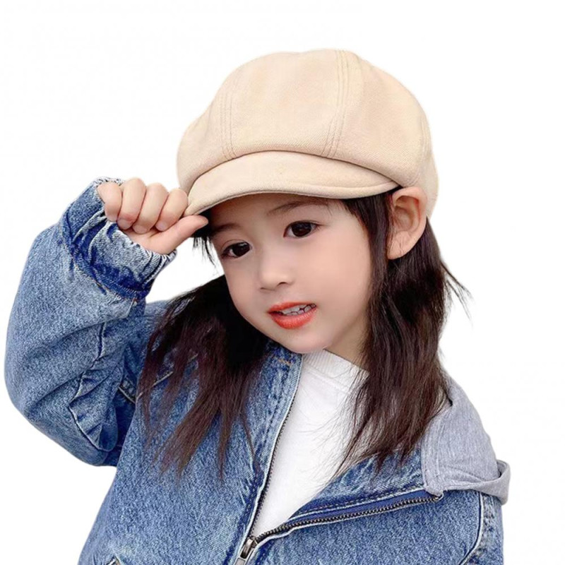 Children Beret Short Brim Vintage Solid Color Newsboy Cap Warm Autumn Winter Cap Girls Octagonal Cap Daily Outdoor Activities Headwear