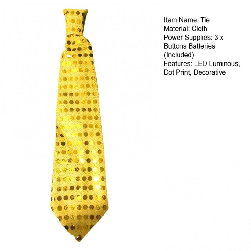 Item Name: Tie Material: Cloth Power Supplies: 3 x Buttons Batteries (Included) Features: LED Luminous, Dot Print, Decorative Size Details: L: 34cm/13.39", W: 7cm/2.76" (Approx.)