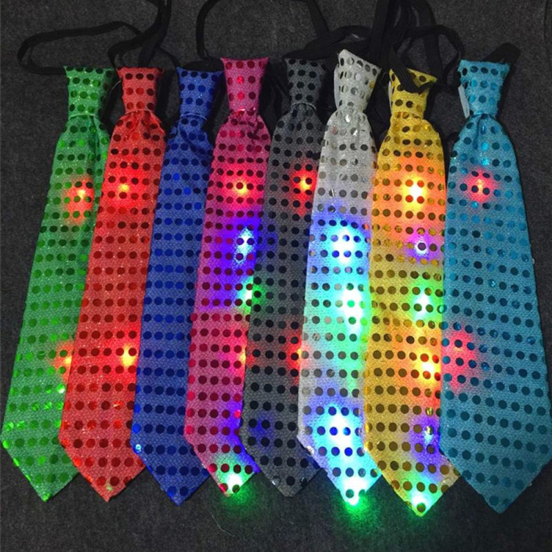 LED Luminous Tie Dot Print Button Battery Powered Necktie Men Women Colorful Sequins Glowing Tie Parties Nightclubs Accessories