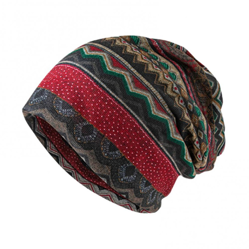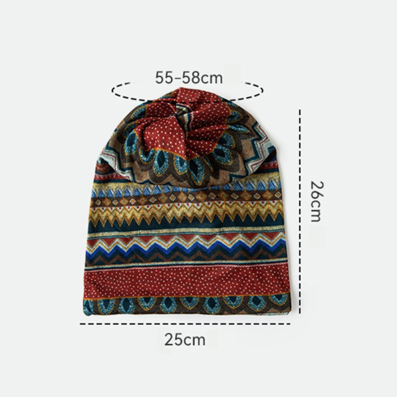 Unisex Winter Hat Vintage Ethnic Print Colorful Elastic Anti-slip Regular Fit Baggy Soft Warm Wide Band Colorfast Women Men Beanie