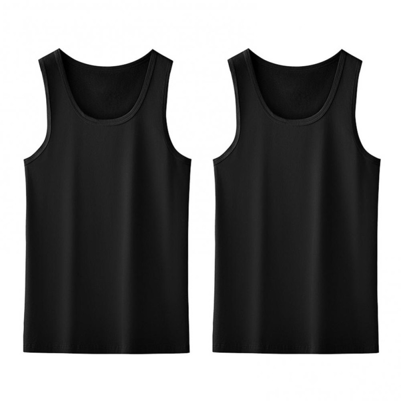 2Pcs Men Vest Round Neck Sleeveless Solid Color Muscle Tank Tops Gym Bodybuilding Running Sportwear Summer Clothing
