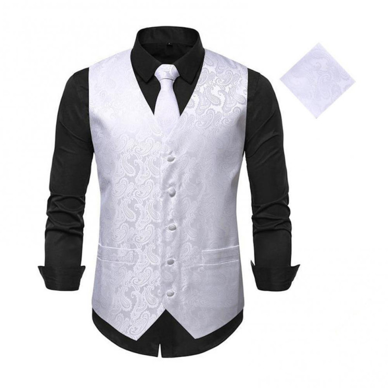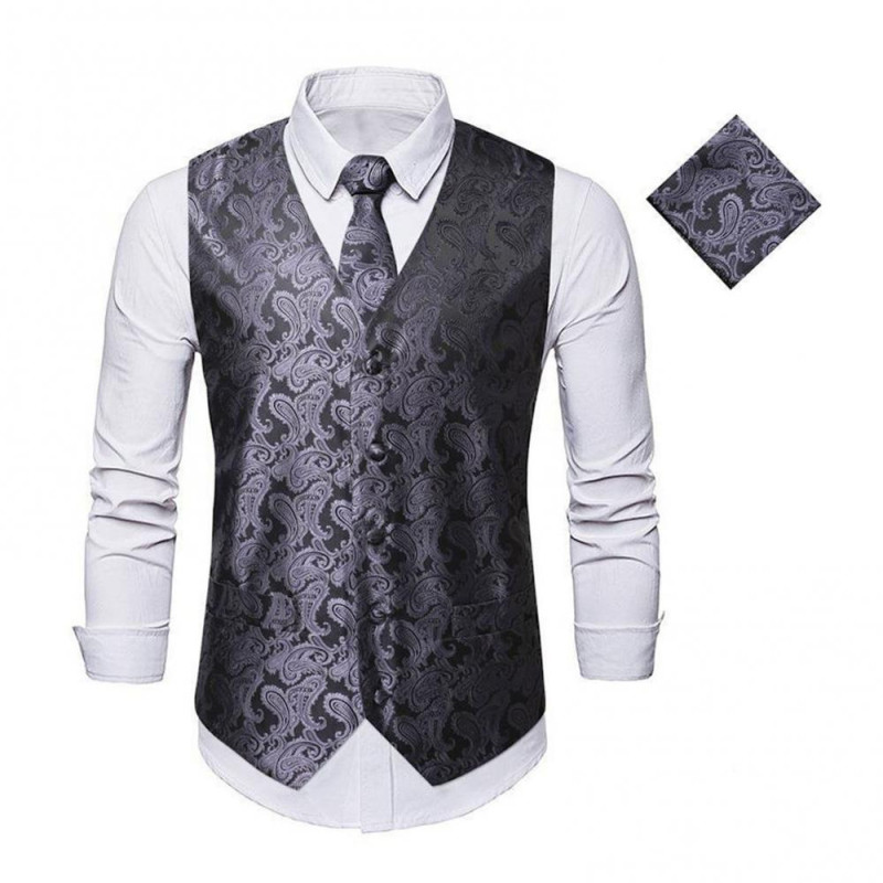 Package Includes: 1 x Suit Vest 1 x Tie 1 x Handkerchief