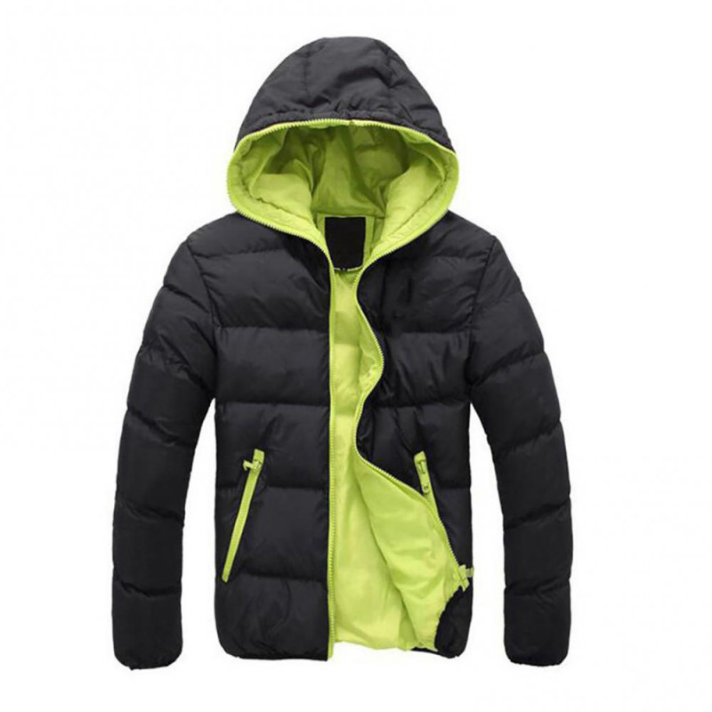 Features: Cotton Padded, Hooded, Color Block, Slim Fit, Zipper Closure
