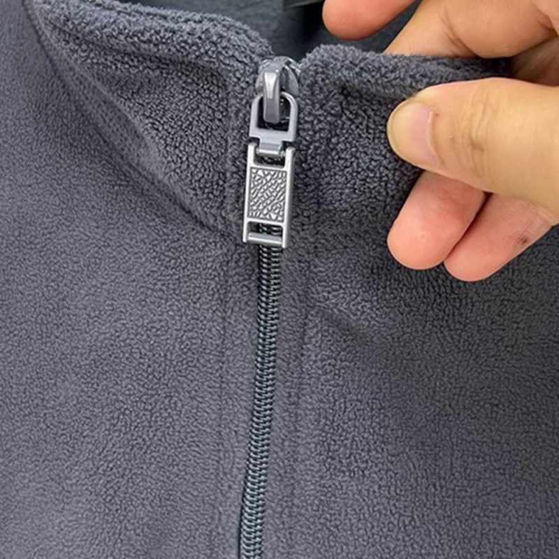 Men Coat Stand-Up Collar Long Sleeve Zipper Closure Polar Fleece Jacket with Pockets Winter Thickened Warm Outerwear
