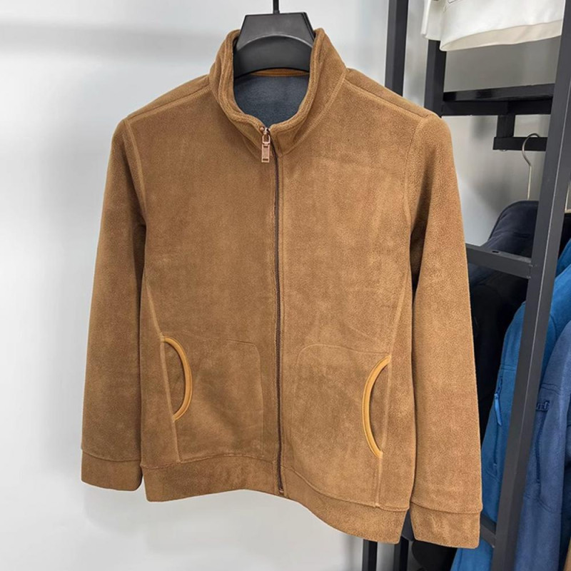 Material: Crafted from premium polyester fiber, this men's jacket offers a soft and comfortable feel while ensuring durability and long-lasting wear. The solid color design and stand-up collar add a touch of timeless style to your wardrobe.