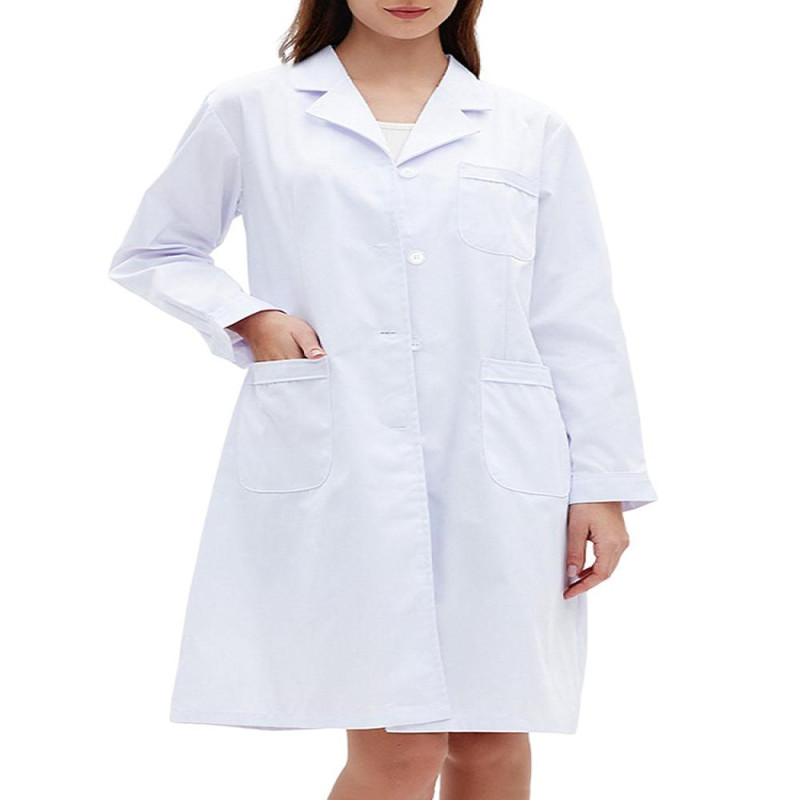Item Name: Doctor Coat Material: Polyester Cotton Style: Simple Gender: Unisex Size Type: Regular Neck Type: V-Neck Sleeve Length: Long Sleeve Length: Mid-length Features: Loose Fit, Solid Color, Pockets Size Details: Women Style: Size: Women S, Bust: 90cm/35.43", Clothes Length: 101cm/39.76" (Approx.) Size: Women M, Bust: 92cm/36.22", Clothes Length: 105cm/41.34" (Approx.) Size: Women L, Bust: 94cm/37.01", Clothes Length: 109cm/42.91" (Approx.) Size: Women XL, Bust: 96cm/37.8", Clothes Length: 114cm/44.88" (Approx.) Size: Women XXL, Bust: 98cm/38.58", Clothes Length: 119cm/46.85" (Approx.) Men Style: Size: Men S, Bust: 96cm/37.8", Clothes Length: 110cm/43.31" (Approx.) Size: Men M, Bust: 98cm/38.58", Clothes Length: 115cm/45.28" (Approx.) Size: Men L, Bust: 100cm/39.37", Clothes Length: 120cm/47.24" (Approx.) Size: Men XL, Bust: 102cm/40.16", Clothes Length: 125cm/49.21" (Approx.) Size: Men XXL, Bust: 104cm/40.94", Clothes Length: 130cm/51.18" (Approx.)