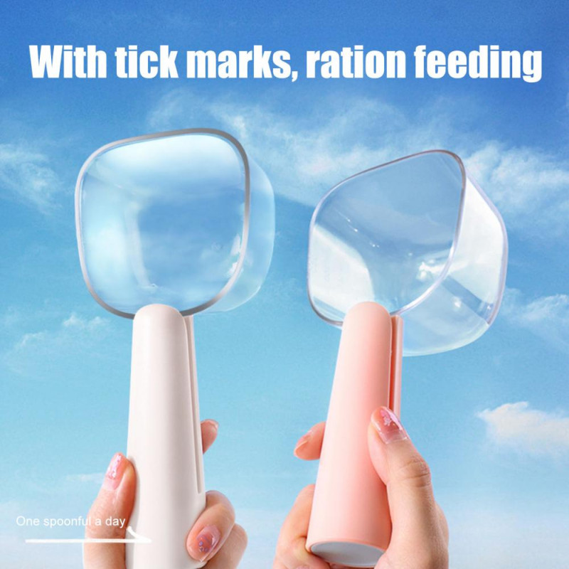 Description: Introducing the pet food spoon with a 2-in-1 feature design! This innovative spoon is not only beautifully crafted but also highly practical. The 4.7-inch long handle allows for easy food retrieval from large bags or containers, while the wet food spoon at the end ensures no bit of food is left behind. With a capacity of 1 cup (250 ml), this pet food spoon is perfect for accurately measuring food portions. The transparent design makes it easy to see the measurements, helping you customize your pet's diet with ease. Crafted from food-grade PET and ABS materials, this spoon is safe for your pets as it comes in direct contact with their food. The smooth surface is easy to clean, ensuring your pet's safety with every use. Durable and long-lasting, this spoon will serve you for years to come. Versatile in use, this pet cereal spoon is suitable for measuring food portions for dogs, cats, birds, and other pets, whether dry or wet. It can also be used for measuring flour, rice, and other cooking ingredients in bulk.