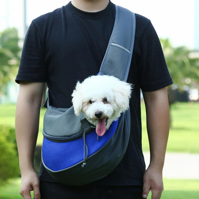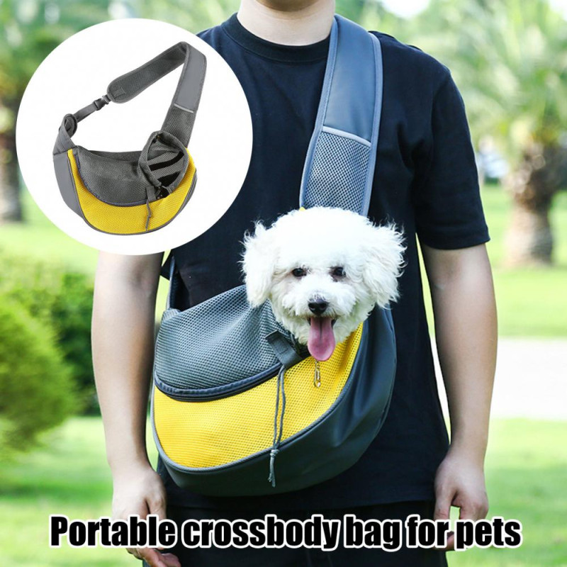 Pet Carrier Backpack Large Capacity Zipper Closure Hands-Free Mesh Sling Bag Breathable Design Mesh Cloth Crossbody Shoulder Bag