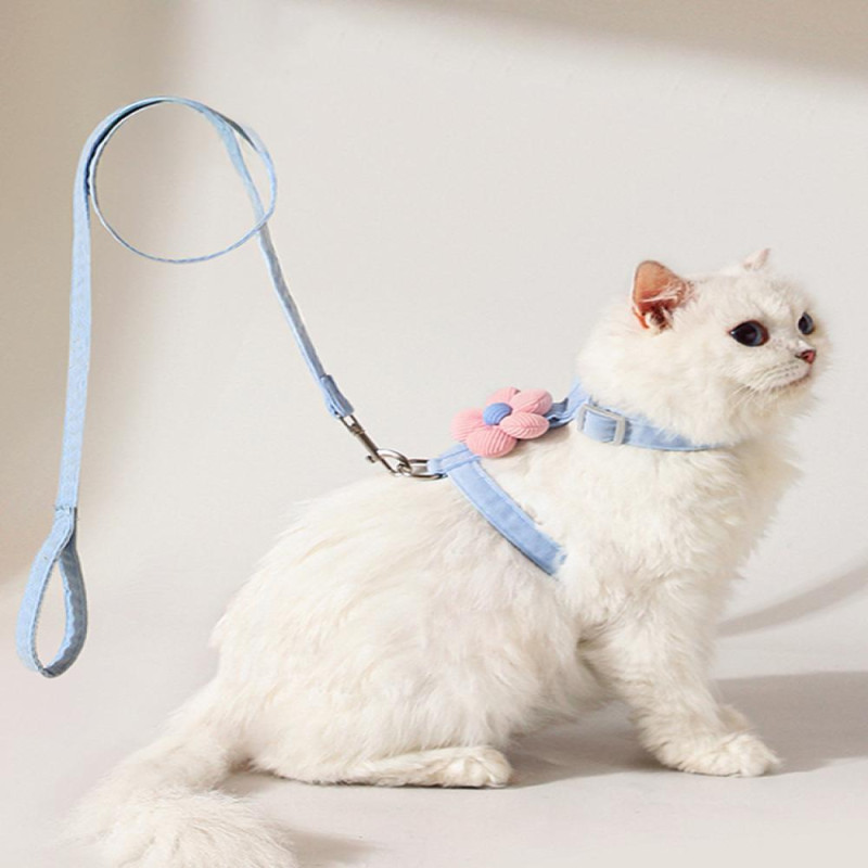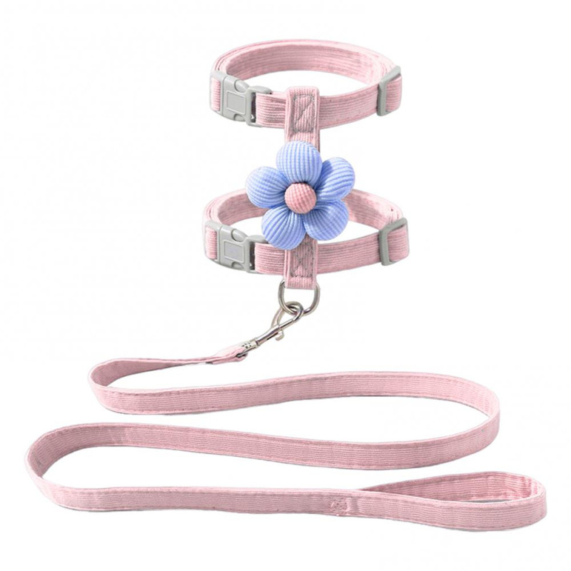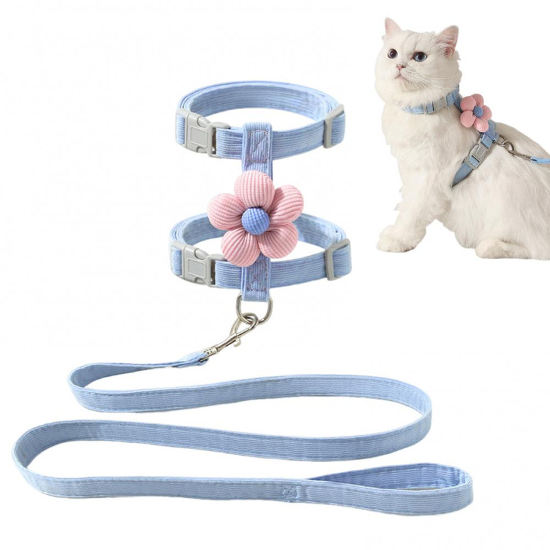 Cat Harness Leash Collar Set for Walking Adjustable Double Layer Pet Harness with Flower Decor Escape Proof Pet Collar Leash for Small Medium Cats Dogs