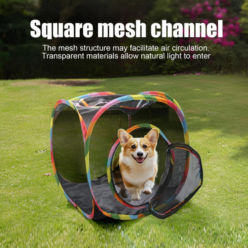Description: Introducing the cat cube tent, a versatile and interactive cat shelter that offers unshakable stability with its sturdy steel frame structure. Your feline friend will enjoy a comfortable and safe environment thanks to the breathable mesh design that ensures proper ventilation both indoors and outdoors. This space-saving cat cube is perfect for creating a cozy hiding spot for your pet while encouraging active play and exploration. Its foldable frame allows for easy storage under furniture or in a handbag, making it convenient for travel or compact living spaces. Not just limited to cats, this cat cube is also suitable for puppies and rabbits, providing a pet-friendly design that prioritizes safety and durability. Transform this cube into an interactive game center by connecting additional cubes or tunnels, stimulating your pet's natural hunting instincts and creating an engaging playground for hours of fun.