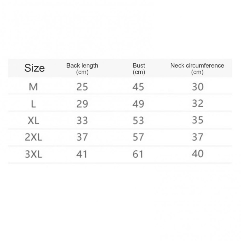 Item Name: Dog Raincoat Material: Polyester Features: Adjustable, Waterproof, Lightweight, Comfortable Size Details: S: Back Length: 21cm/8.27", Bust: 41cm/16.14", Neck: 27cm/10.63" (Approx.) M: Back Length: 25cm/9.84", Bust: 45cm/17.72", Neck: 30cm/11.81" (Approx.) L: Back Length: 29cm/11.42", Bust: 49cm/19.29", Neck: 32cm/12.6" (Approx.) XL: Back Length: 33cm/12.99", Bust: 53cm/20.87", Neck: 35cm/13.78" (Approx.) XXL: Back Length: 37cm/14.57", Bust: 57cm/22.44", Neck: 37cm/14.57" (Approx.) XXXL: Back Length: 41cm/16.14", Bust: 61cm/24.02", Neck: 40cm/15.75" (Approx.)