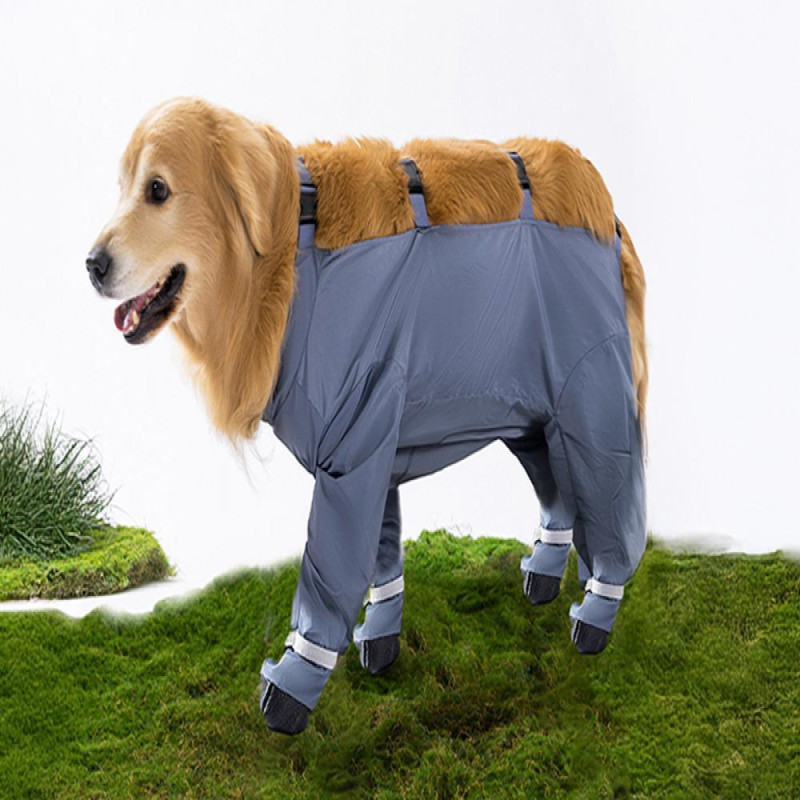 Description: Keep your furry friend's paws dry and comfortable in any weather with these pet clothes. Designed with waterproof fabric and full leg coverage, these boots are perfect for rainy days, snowy trails, or muddy parks. The safe back design features a suspender and 4-leg system to ensure the boots stay firmly in place without slipping off during adventures. The non-slip grips on the sturdy sole provide excellent traction and stability on wet, icy, or slippery surfaces, keeping your dog safe while walking, hiking, or playing outdoors. Available in multiple sizes for dogs of all breeds, these boots are ideal for daily walks, outdoor activities, or protecting sensitive claws from sharp objects. Plus, with reflective ankle straps and an elastic fit, these boots enhance night safety visibility, making it easier for your puppy to take a safe walk at night.