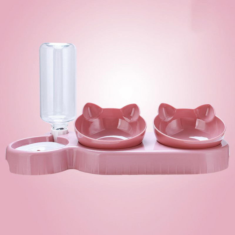 Double Pet Food Bowl And Water Bottle Set 3-in-1 Detachable Tilted Cat Dog Feeder Bowl with Automatic Water Dispenser for Small Medium Dogs Cats