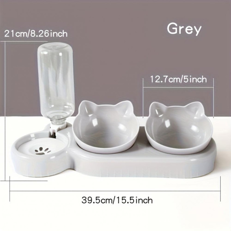 Item Name: Pet Bowl Material: Plastic Applicable Object: Cat Features: 3-in-1, Automatic Water Dispenser, Safe Size Details: Size: 39.5cm x 21cm/15.55" x 8.27" (Approx.) Bowl: 12.7cm/5" (Approx.)