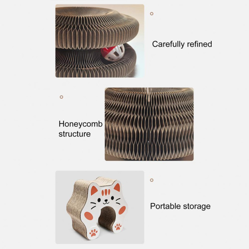 Description: Introducing the innovative cat scratching board, a must-have for your furry friend's playtime! Crafted from premium corrugated paper and secured with magnets, this indoor toy is safe, non-toxic, and provides endless entertainment for your beloved pet. The foldable design allows for easy storage and portability, making it convenient for both you and your cat. With a magical accordion feature and a delightful bell ball inside, this toy offers interactive fun while promoting exercise and energy release. Say goodbye to scratched furniture as this scratch pad satisfies your cat's natural scratching instincts. Not just for cats, this versatile toy doubles as a stress-reliever for you too. Invest in the cat scratching board today and watch your pet's happiness soar!