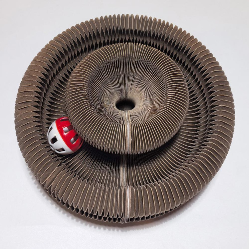 Interactive Magic Accordion Toy: Featuring an engaging bell ball inside, this innovative cat scratching board can be reshaped into various configurations resembling a magical accordion, providing endless entertainment for your feline friend to stay active and playful.
