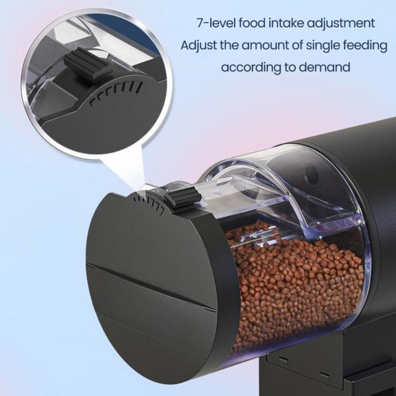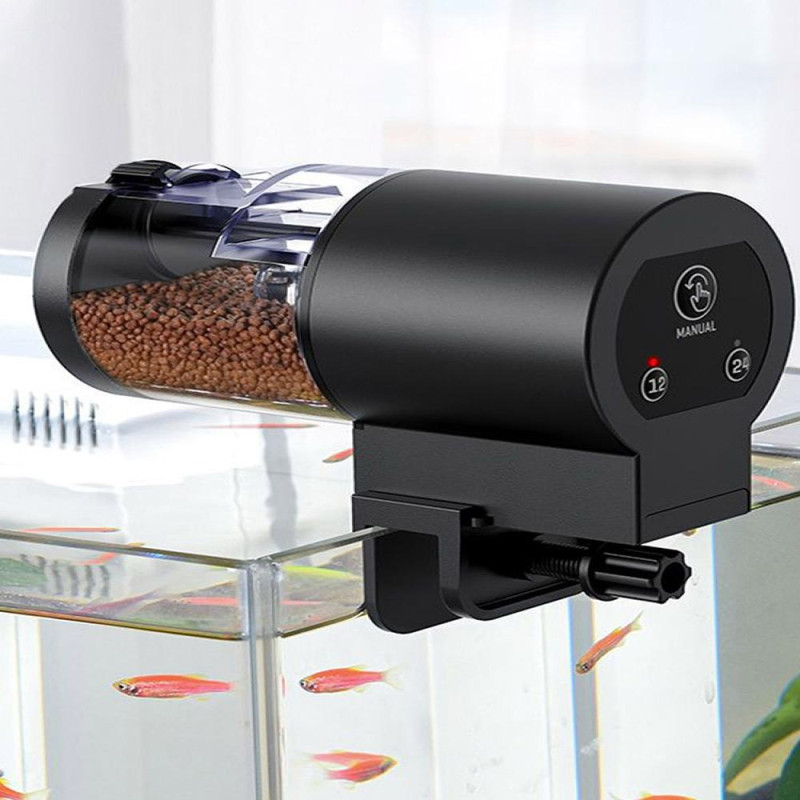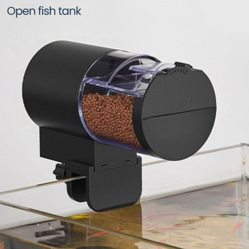 Efficient Food Preservation: The moisture-proof plastic material bucket ensures fish food is dry, preventing blockages in the outlet. Ideal for various food types like strips, powders, and flakes. Customizable Feeding Precision: Adjust the feeding amount effortlessly by modifying the size of the food outlet on the material barrel to suit your fish's needs perfectly. Versatile Feeding Modes: Seamlessly switch between manual and automatic modes. Instantly feed with the manual key or set feeding intervals of 12/24 hours for automated feeding tailored to your schedule. Simple Installation Options: Choose between wall-mounting using the included bracket or secure placement on the aquarium lid with double-sided tape for quick and hassle-free setup. Enhance Aquarium Aesthetics: Perfect for small fish, this feeder not only provides essential nourishment but also creates a hidden sanctuary within your aquarium, elevating its visual appeal with charm and vitality.