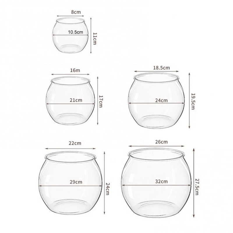 Item Name: Fish Bowl Material: PET Type: Simple Features: Clear, Small, Portable, Multi-functional Size Details: S, L: 11cm/4.33", W: 8cm/3.15" (Approx.) M, L: 17cm/6.69", W: 16cm/6.3" (Approx.) L, L: 19.5cm/7.68", W: 18.5cm/7.28" (Approx.) XL, L: 24cm/9.45", W: 22cm/8.66" (Approx.) XXL, L: 27.5cm/10.83", W: 26cm/10.24" (Approx.)