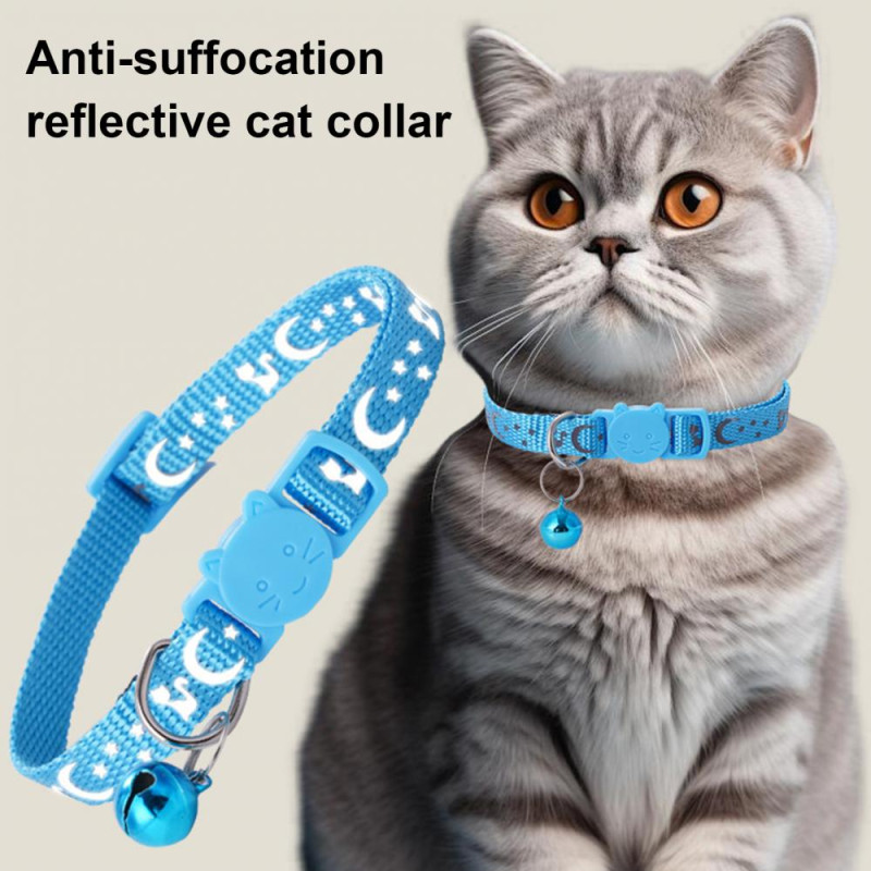 Silky Soft Nylon Material: Crafted from high-quality, soft nylon, these collars ensure a comfortable and gentle fit for your beloved cat, enhancing their overall wearing experience. Vibrant Color Options: Available in 5 vibrant colors, these collars add a pop of color to your cat's attire. The cute cat head design with star and moon patterns glows in the dark after absorbing light, making your feline friend stand out day and night. Fully Adjustable Design: Each collar is fully adjustable to accommodate cats of all sizes, with a suitable neck size range of 20-30 cm. Ensure a perfect fit while leaving ample room for your cat to breathe comfortably during daily wear. Quick Release Safety Closure: Equipped with a quick-release safety closure feature, these collars provide peace of mind by allowing your cat to escape safely if caught or entangled during their curious explorations. Prioritize your cat's safety without compromising on style. Versatile Usage Scenarios: Ideal for various occasions such as daily wear, parties, photography sessions, birthdays, and festive celebrations, these collars are not only stylish but also functional accessories that complement your cat's unique personality and lifestyle.