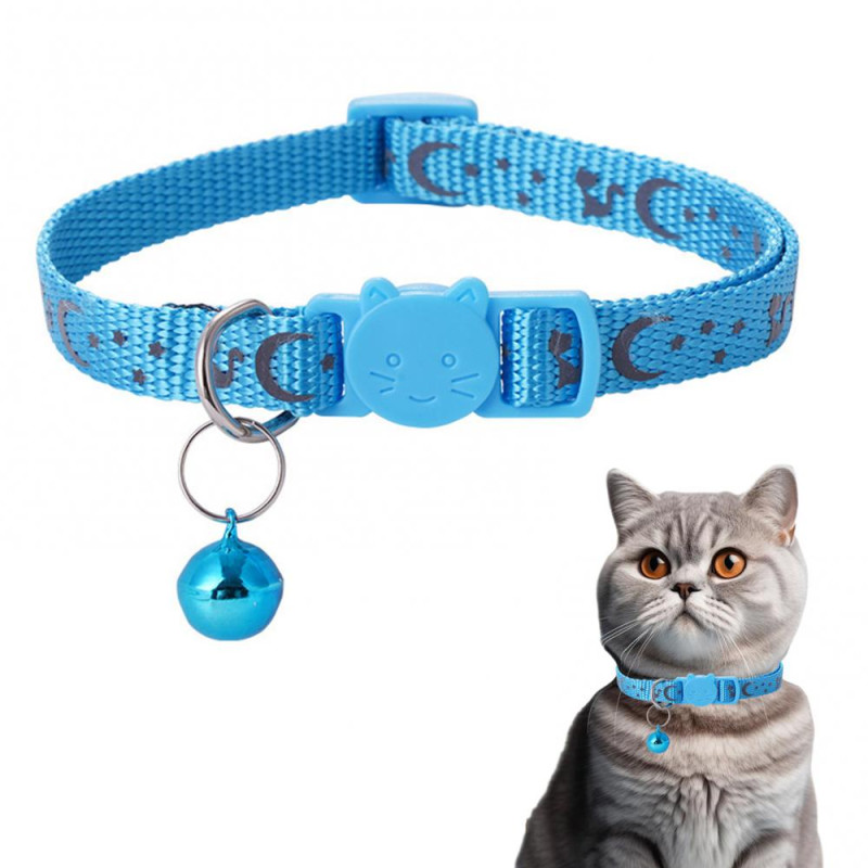 Cat Collar Adjustable Pet Collar with Bell And Safety Release Buckle Star Moon Print Breakaway Nylon Collar for Kitten Cats