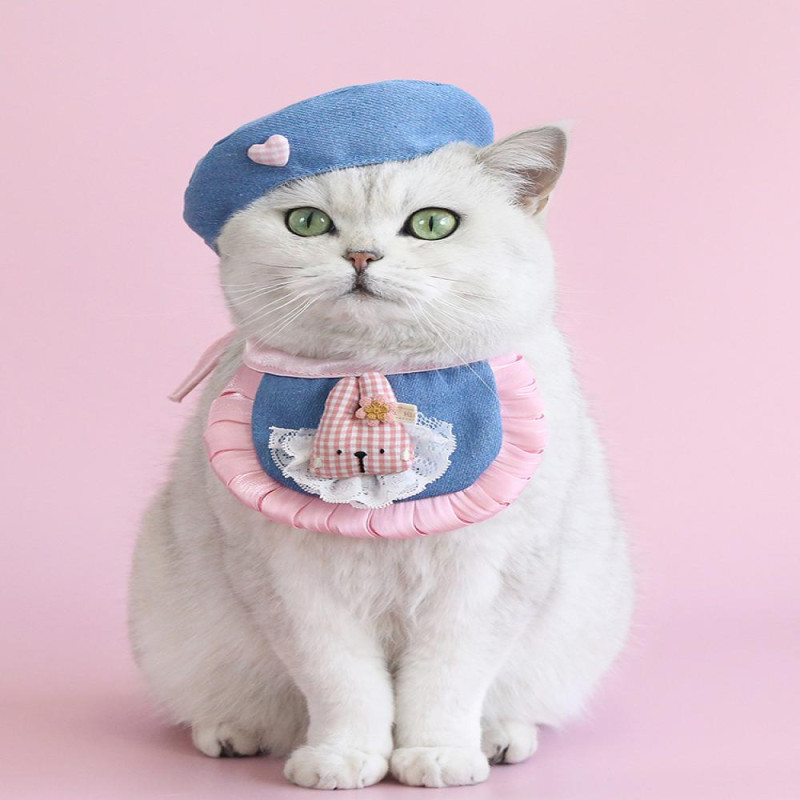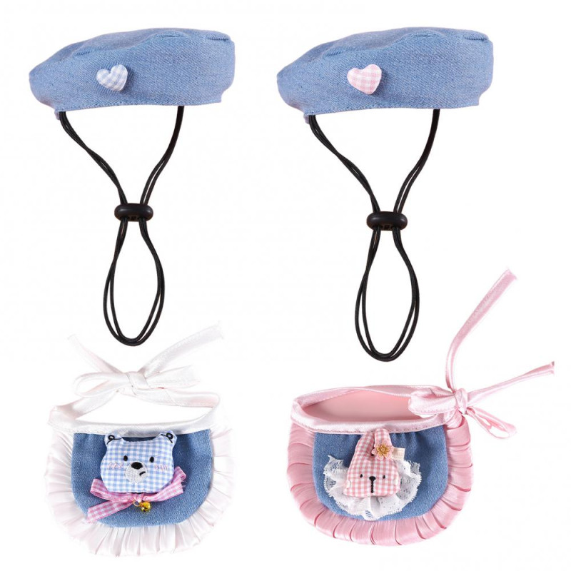Cartoon Pet Costume Small Dog Beret Hat with Adjustable Straps Denim Pet Bandana Dress-up Accessories for Small Medium Dogs Cats