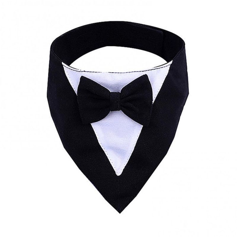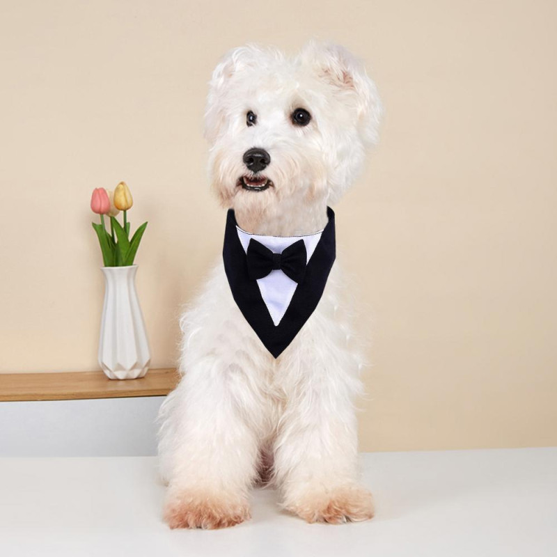 Dog Tuxedo Bandana Formal Wedding Outfit with Bowtie Pet Triangle Bibs Scarf Adjustable Pet Collar for Small Medium Dogs Cats