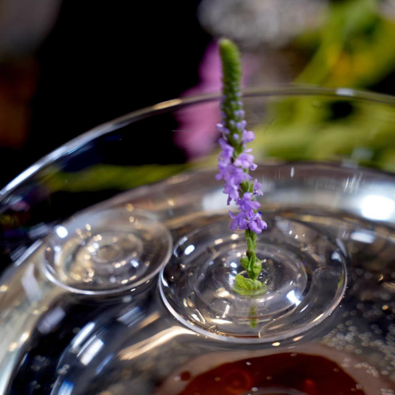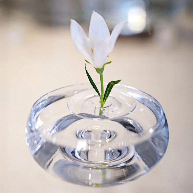 Innovative Stem Holder Design: Central hole secures stems upright with improved buoyancy and stability, ensuring top-heavy blooms stay perfectly poised in a transparent, professional-style float.