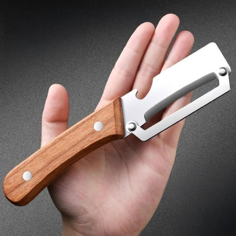 Vegetable Peeler with Wooden Handle Stainless Steel Blade Bottle Opener Non-Slip Grip Fruit Peeler for Potatoes Carrots Fruits