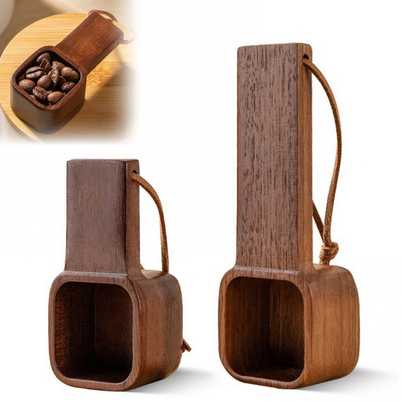 Wooden Coffee Spoons Walnut Wood Hanging Rope Coffee Measuring Scoop Ground Beans Square Tea Sugar Spoon for Home Office