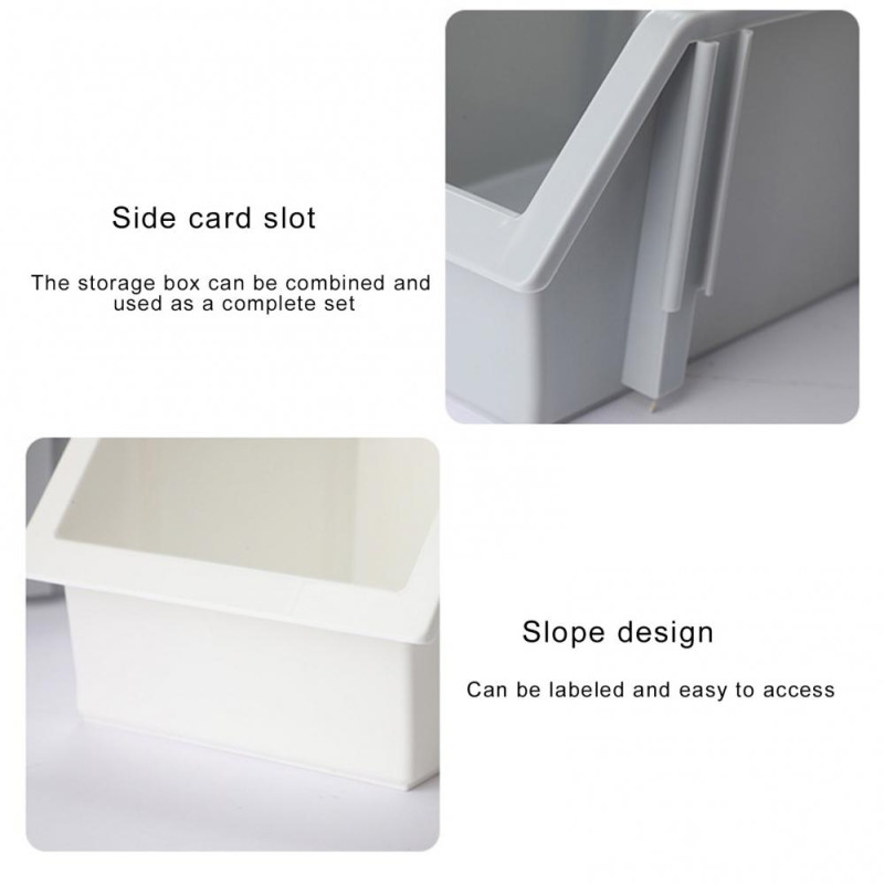 Description: Keep your desktop organized with our versatile storage box. Each box includes label stickers for easy item identification. The grooves on the side allow for seamless stacking, making it convenient to move multiple boxes together. The oblique mouth design ensures effortless access to your items. With a spacious capacity, this box is perfect for storing small desktop essentials. The stackable design, supported by 4 pillars, allows for customizable height adjustments to suit your storage needs. Crafted from high-quality plastic, this box is durable and long-lasting. Ideal for home, office, school, or dorm use, it can store stationery, gadgets, cosmetics, and more. Stay tidy and efficient with this practical storage solution.