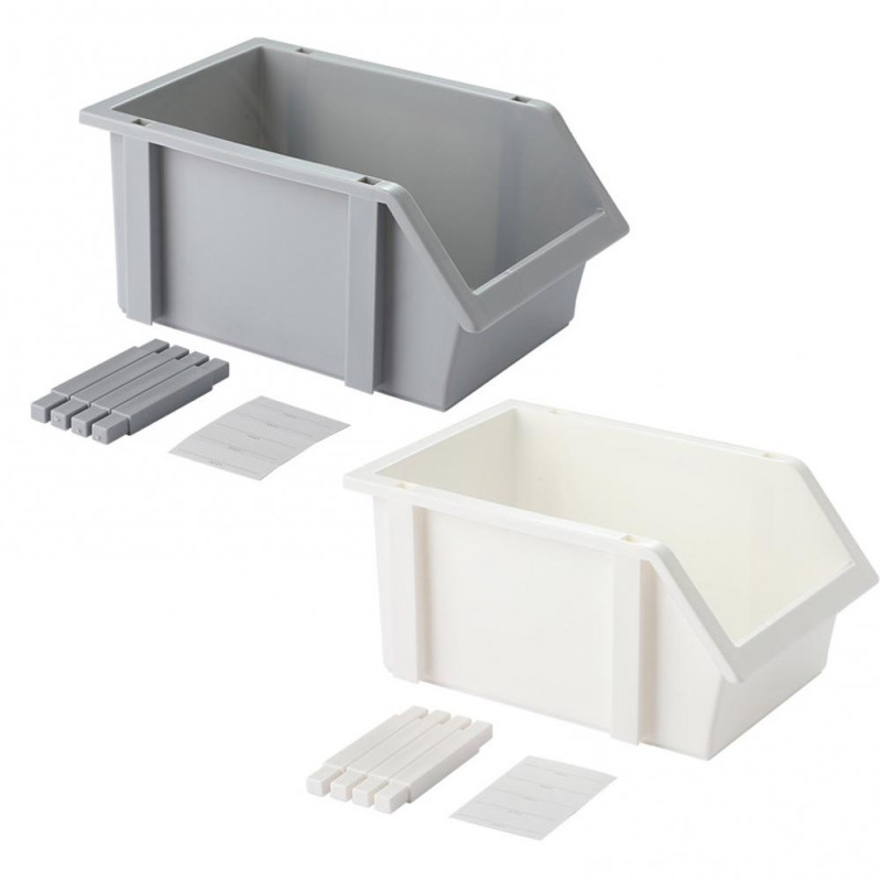 Efficient Organization: Each storage box includes label stickers for clear item identification. Grooves on the side allow easy stacking, facilitating seamless movement and storage set creation.
