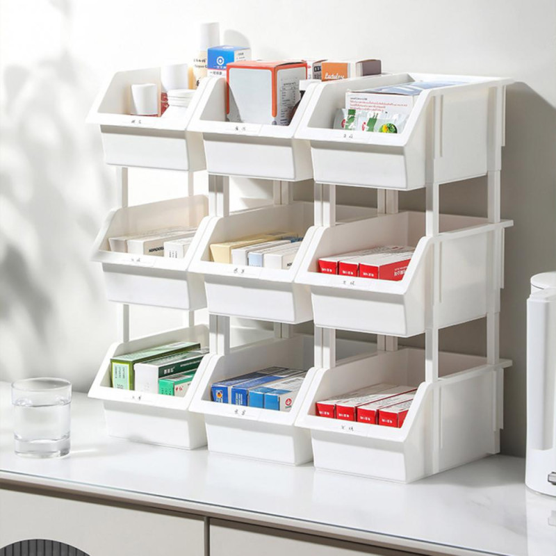 Stackable Versatility: These storage boxes are stackable on desktops using the provided 4 pillars for stable stacking. Customize the height as needed for categorized storage, promoting a tidy and systematic arrangement.