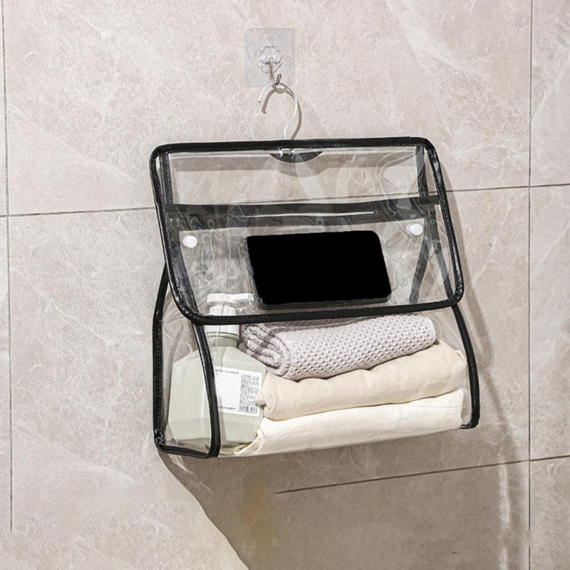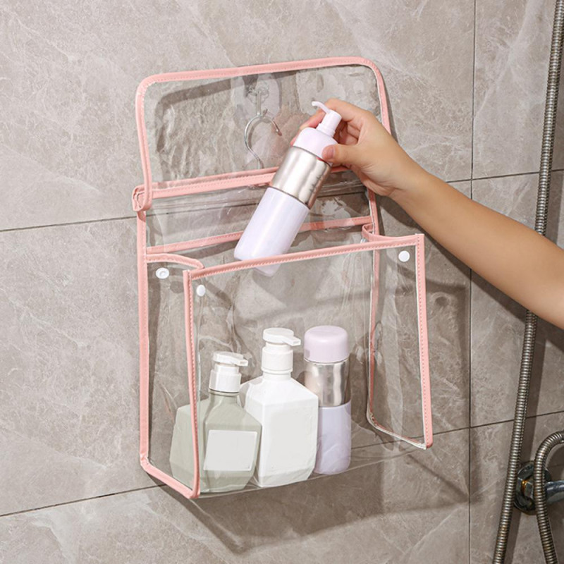 Description: Keep your essentials organized and easily accessible with this versatile storage bag. Its transparent design allows you to quickly locate items, while the hanging storage feature helps save space. Crafted from high-quality PVC material, this bag is waterproof and moisture-proof, ensuring your belongings stay protected. The dedicated phone compartment enables you to use your device safely even with wet hands. Perfect for university dormitories, apartments, RVs, rentals, and more. Stay organized in style with this practical storage solution.