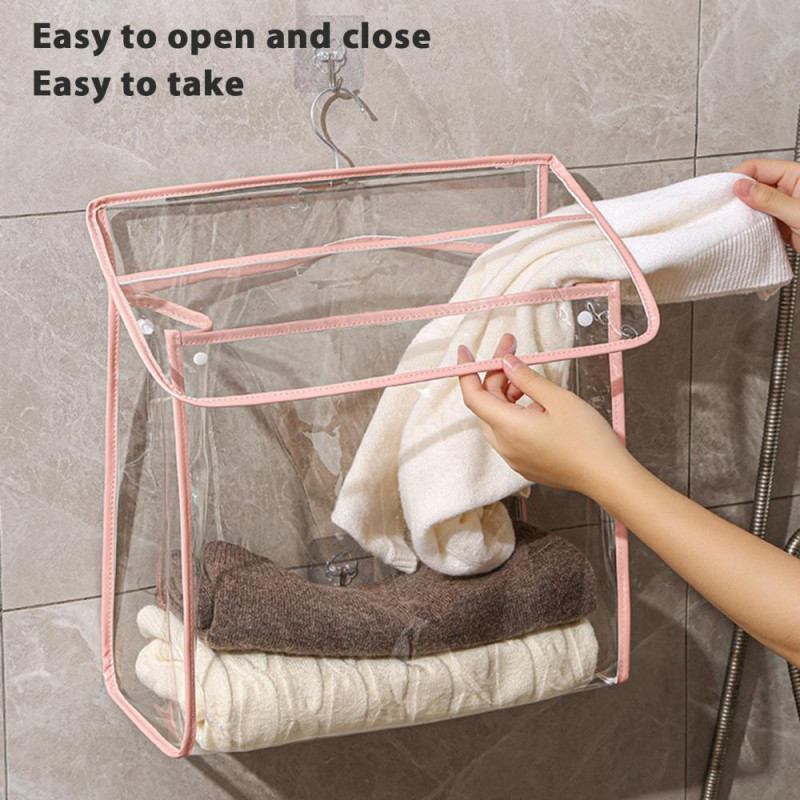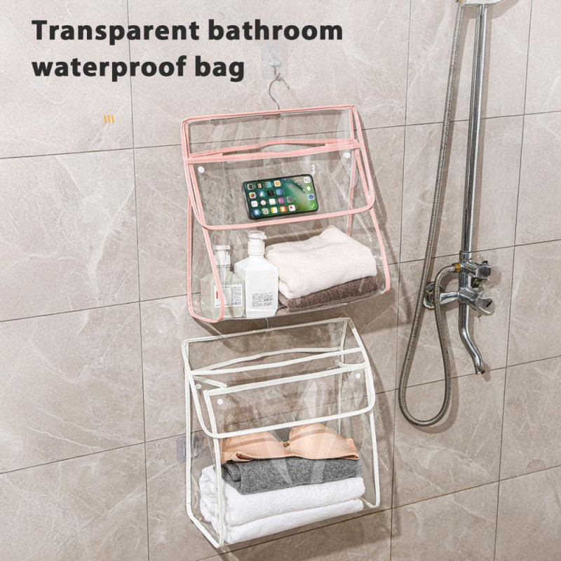 Waterproof Shower Clothes Bag Transparent Bathroom Storage Bag Hanging Storage Pouch with Hook for Mobile Phone Dry Clothes Towel Dorms RVs